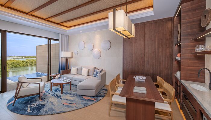 Una idílica villa familiar inspirada en la belleza tropical de las Maldivas. Sumérgete en nuestros lujosos espacios con terraza, asoleadero, estudio y cuarto de servicio, además de una amplia sala de estar. Sumérgete en la piscina para divertirte en familia o relájate mientras los niños juegan. Cene juntos al aire libre mientras las estrellas brillan sobre el agua.