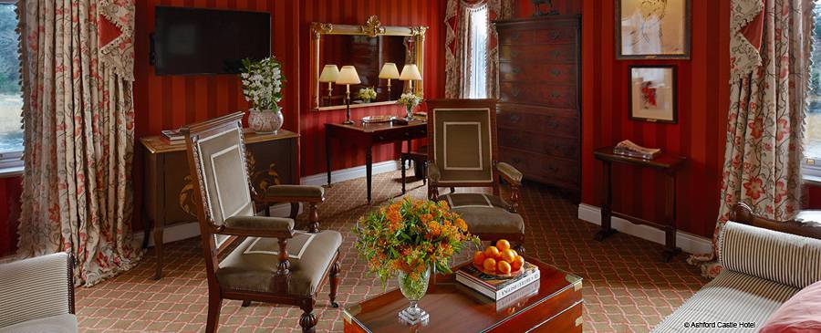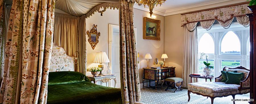 Cada una de las 82 habitaciones, suites y la lujosa cabaña en el castillo de Ashford representan la elegancia y la finura tradicionales. Después de una extensa renovación, muchas de las habitaciones y suites han sido diseñadas individualmente y con amor, combinando las características originales del castillo con los últimos lujos modernos. La atención meticulosa al detalle se puede encontrar en las obras de arte únicas, muebles antiguos cuidadosamente seleccionados y telas suntuosas con alfombras personalizadas, camas a medida, iluminación, toallas exquisitas y ropa de cama de algodón egipcio.