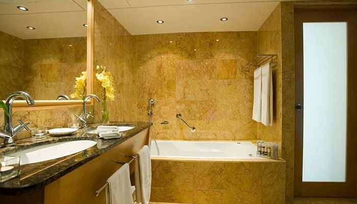 Nuestras suites de un dormitorio de aproximadamente 38 metros cuadrados, comparten las mismas instalaciones y comodidades de primer nivel que nuestras suites junior, siendo un nivel supremo y lujoso de alojamiento, equipadas con comodidades de alta calidad como baño de mármol, TV de pantalla plana, té y café. instalaciones y más, así como una sala de estar cómoda y separada.