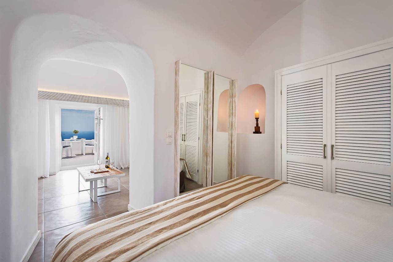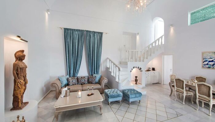 Athina Luxury Suites consta de una Junior Suite para dos personas, dos Master Suites, estilo loft, para hasta tres personas, cuatro Deluxe Suites con dormitorio y sala de estar separados, para hasta cuatro personas, dos Suites de luna de miel, estrictamente para parejas, todas Con sus balcones en frente frente a la increíble vista. Finalmente, la única Suite Real es en realidad una villa de 140 metros cuadrados, con un fantástico balcón privado con un gran jacuzzi climatizado, obras de arte raras y preciosas, y con capacidad para 6 personas.