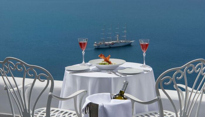 Santorini es la región vinícola más distintiva de Grecia y el hogar del viñedo más antiguo de Europa, lo que se traduce en extraordinarios vinos blancos de Assyrtiko y excelentes vinos de postre dulce, los Vinsanto. Sublime, auténticos vinos y sabores indígenas, rodeados por el azul del mar Egeo. El paquete „Los amantes del vino“ incluye un tour único de cata de vinos en la isla, visitando al menos dos bodegas con cata de vinos, con una duración de al menos 4 horas. Ofreceremos en su suite dos botellas de buen vino local para disfrutarlas en su balcón con todas estas increíbles vistas. Finalmente, organizaremos para usted una noche romántica especial en el bar restaurante de nuestro hotel con una botella de buen vino y un plato frío de delicias.