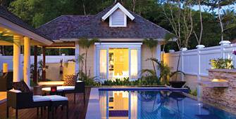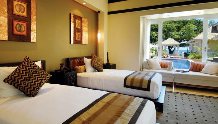 En la villa frente a la playa, con piscina y spa, el omnipresente ésprit de Seychelles llena el aire. No se puede dejar de encantar por las vistas y los sonidos del océano, desde el poderoso oleaje del mar que se rompe en la costa hasta la brisa refrescante. La villa de un dormitorio es extremadamente lujosa y espaciosa; Le brinda la comodidad de una piscina privada, un pabellón de masajes, una amplia galería, una piscina de chorros al aire libre y una sala de vapor. El artista local George Camille recibió el encargo de producir piezas de arte únicas basadas en el legendario coco-de-mer, la tuerca más grande del mundo, que se suma al exótico esplendor de estas villas románticas.
