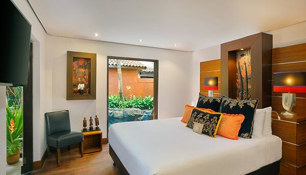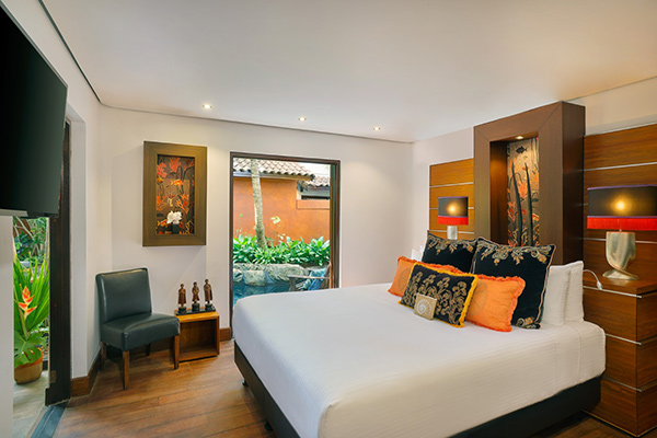 Rodeadas por nuestros exuberantes jardines tropicales, las Tropical Pool Villas ofrecen un refugio espacioso para parejas o familias que viajan con niños. Con 1 a 3 dormitorios, 1 o 2 baños, una cocina totalmente equipada y un gran patio con acceso directo a la piscina de borde infinito mineral del resort, se cuidan todos los lujos modernos. Hay una sala de estar interior y exterior con mesa de comedor para comidas íntimas, ya sea dentro de la villa o en la terraza de la piscina. Las villas tienen pisos de madera y techos altos coloniales, lo que las convierte en un fresco oasis personal para relajarse y descansar.