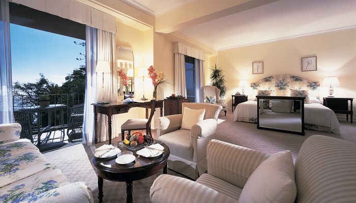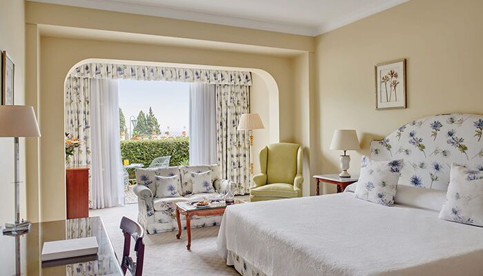 Las tranquilas y serenas suites Deluxe Junior se encuentran en todo el edificio principal y el ala del jardín. Cada uno ofrece un balcón, la mayoría con impresionantes vistas al mar.