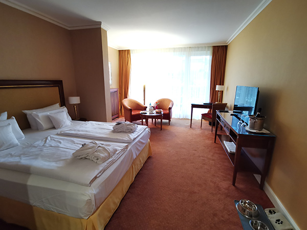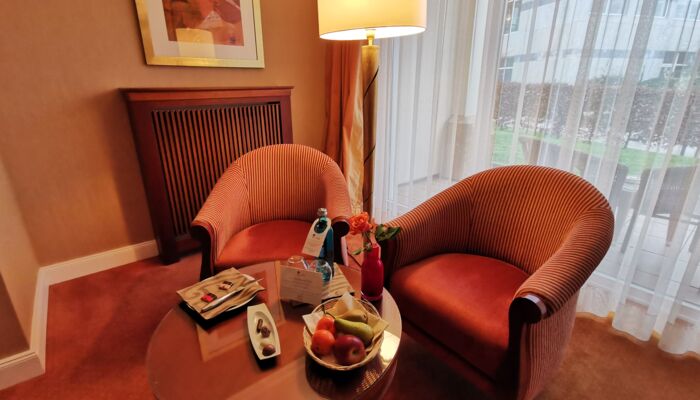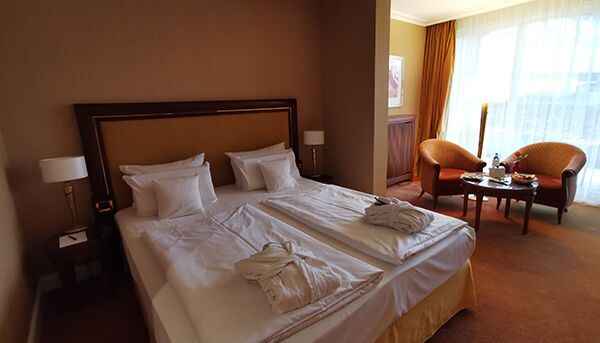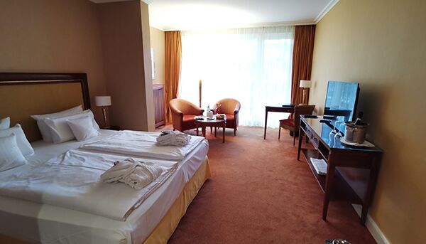 Rico desayuno buffet en nuestro restaurante BelVeder, su albornoz y zapatillas personales para su estancia, uso de Ostsee Therme, una zona de baño termal y sauna en 14.000 m² y con acceso cubierto desde el hotel, participación en programas de actividades en el Vita-Spa - el gimnasio y club de salud del Ostsee Therme, acceso a Internet WiFi en el hotel y en las habitaciones
