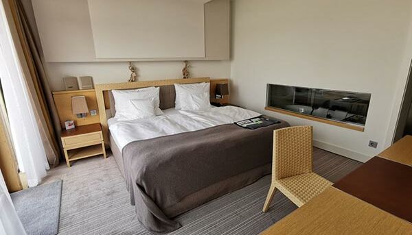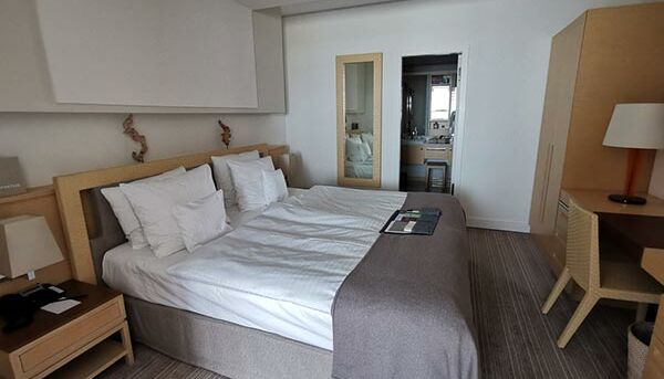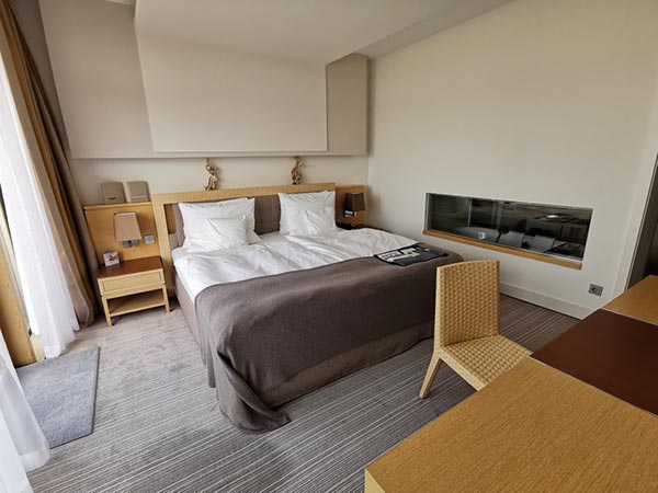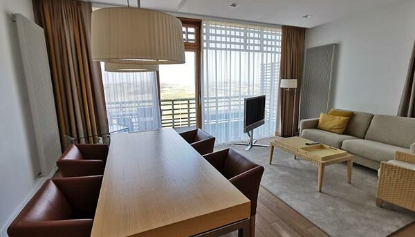 Las 77 lujosas habitaciones y suites se caracterizan por su diseño deportivo y elegante, con una cuidada mezcla de materiales naturales nobles y exclusivos. Aquí se aplica el lema "menos es más": una reducción a lo esencial en lugar de una sobrecarga sensorial óptica. Las cinco categorías de habitaciones diferentes tienen su propio balcón o una exclusiva terraza en la azotea de la suite con una amplia vista del Mar del Norte, el campo de golf o el puerto. Inundado de luz, puede disfrutar de muebles de alta calidad, desde mármol Perlino Bianco en el baño, camas con somier de gran tamaño, numerosos tipos de almohadas premium, pisos de madera hasta obras de arte seleccionadas y su minibar privado.