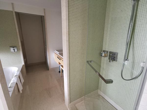 La sala de estar y el dormitorio combinados con una gran cama King (2,20 m), una zona de estar para relajarse y el baño, equipado con ducha de lluvia y bañera separada, ofrecen mucho espacio para unas vacaciones relajantes.