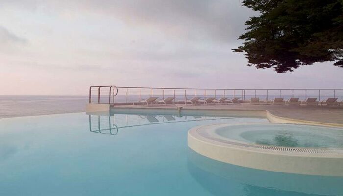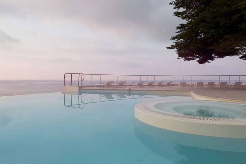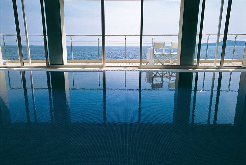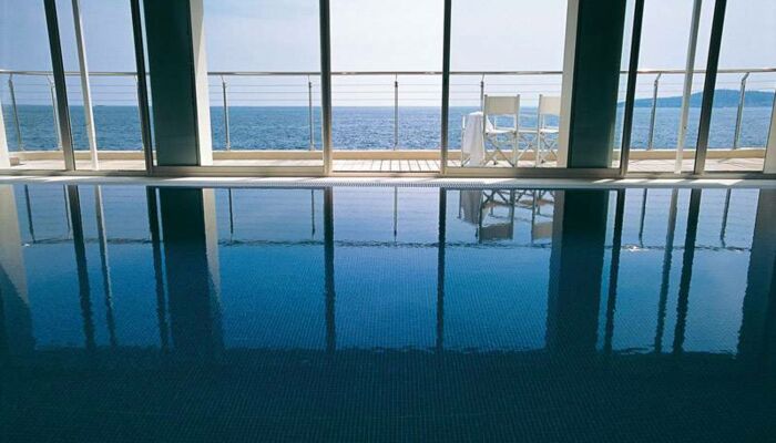 Nade en la piscina infinita de agua de mar (climatizada de mayo a noviembre) o en la piscina cubierta climatizada de agua dulce