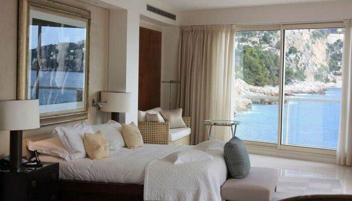Esta ubicación consta de tres habitaciones ubicadas en la pared este de la península, con vistas a la playa privada de Cap y la bahía de Cap d’Ail.
