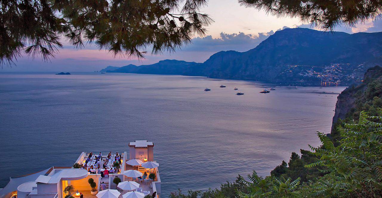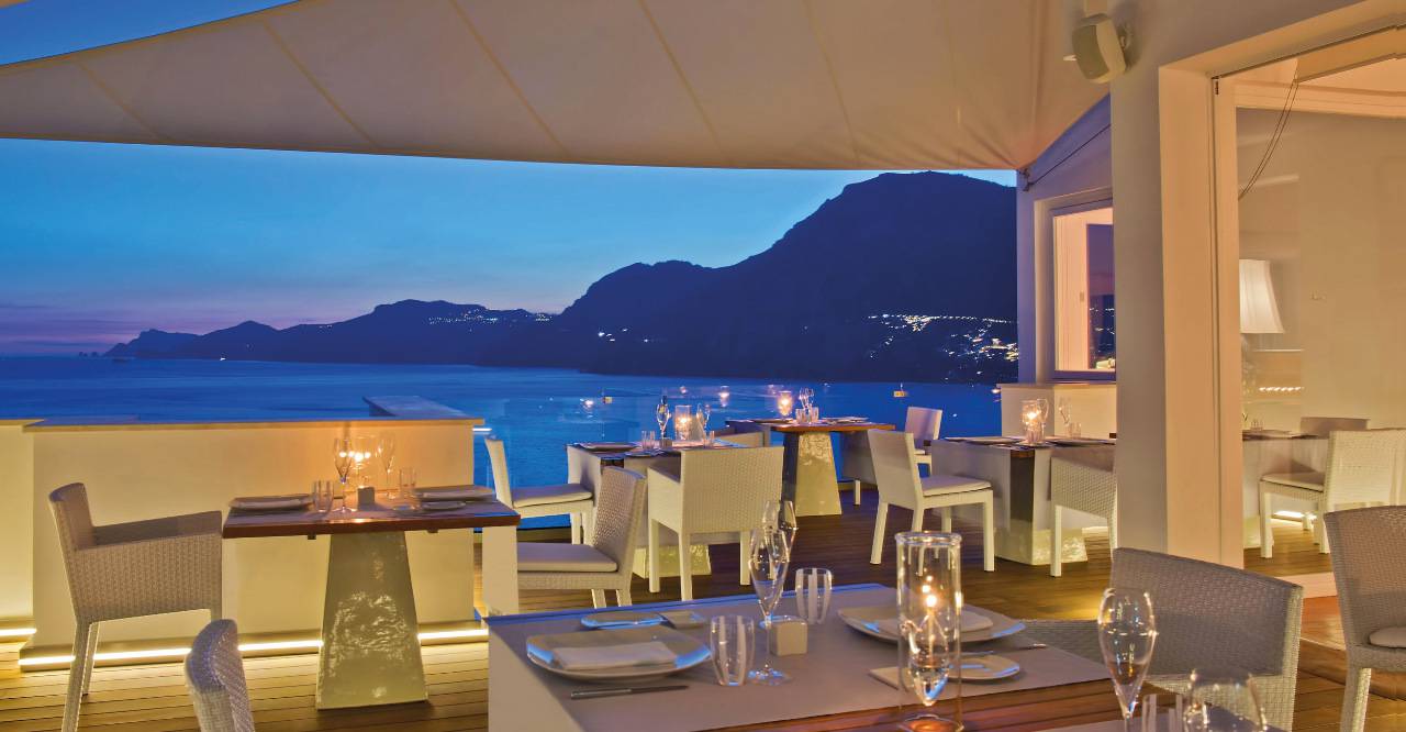 Cenas elegantes en la costa de Amalfi.