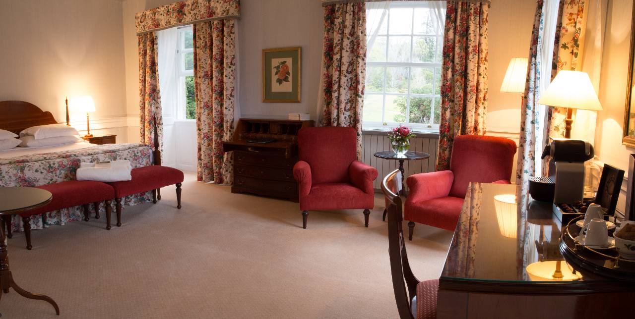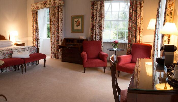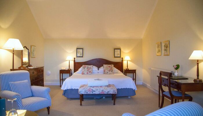 Las habitaciones dobles de la casa principal disfrutan de un ambiente de época dentro de la casa antigua. Brillante y aireado, el personaje antiguo es inmediatamente acogedor y deliciosamente informal. Decorados en tonos pastel, los tonos apagados acentúan los muebles de caoba y las telas decorativas florales. Algunas de las habitaciones disfrutan de vistas elevadas sobre la terraza y el jardín trasero.