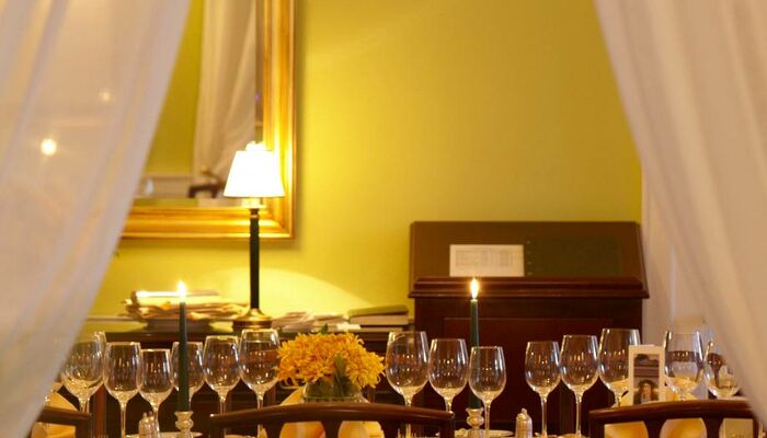 Decorado en relajantes tonos de durazno y diseñado para encarnar el estilo y la comodidad de la vida en el campo, el comedor Casa Velha refleja la elegancia clásica asociada con el hotel.